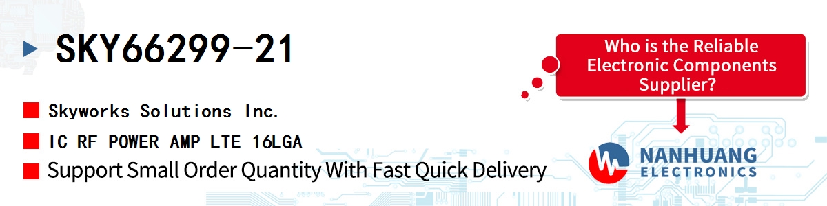 SKY66299-21, Skyworks authentic parts in stock from Skyworks authorized distributors, order today, can ship immediately.